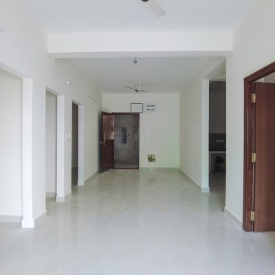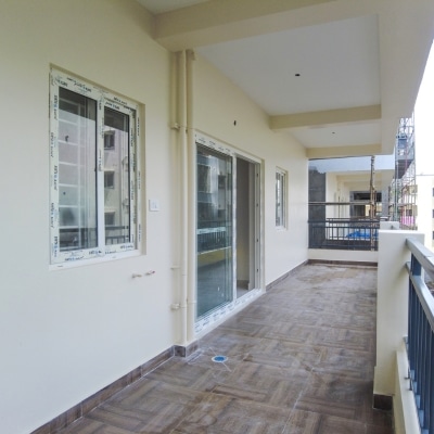 Living, Drawing & Dining: 2’x4’ size vitrified tiles of Kajaria/Rak or equivalent. Kitchen: Cladding upto 2’ height above the platform with wall tiles of reputed make. Utility: 2’X2’ rustic-finish premium vitrified tiles of reputed make. Balcony & Sit-out area: 2’X2’ rustic-finish premium vitrified tiles of reputed make. Bathrooms: Acid resistant, anti-skid ceramic tiles of reputed make.